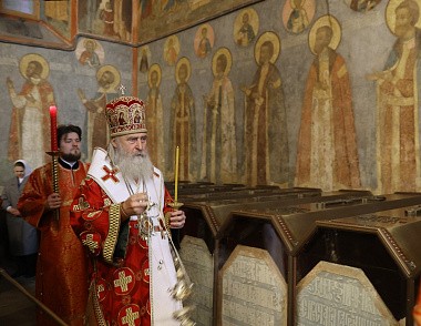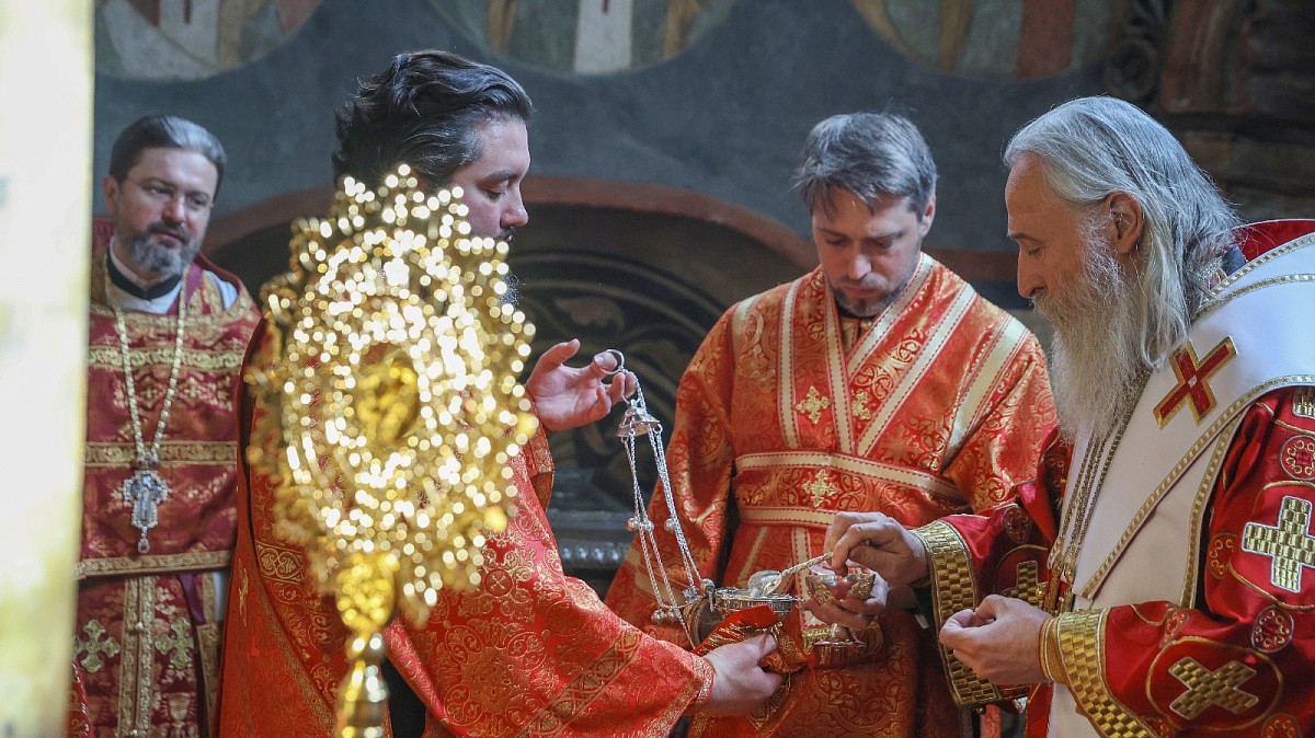 Богослужебные песнопения исполнил хор Донского монастыря.