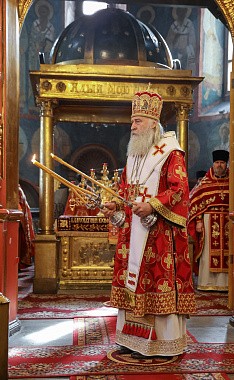 По окончании Литургии митрополит Феогност обратился к собравшимся с архипастырским словом.