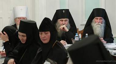 Открывая совещание, председатель Синодального отдела по монастырям и монашеству архиепископ Феогност передал собравшимся благословение Святейшего Патриарха Московского и всея Руси Кирилла и предоставил слово митрополиту Воронежскому и Лискинскому Сергию.