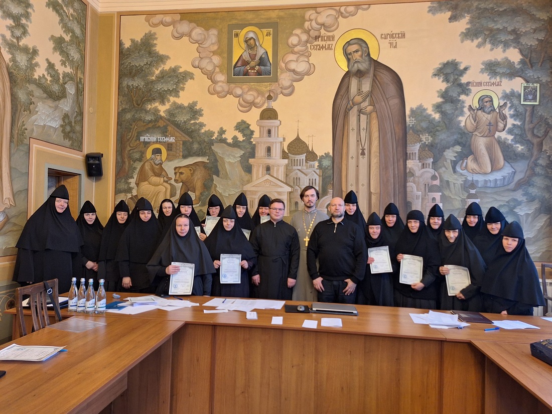 Преподаватель вышеупомянутых курсов и преподаватель Нижегородской духовной семинарии, кандидат богословия иерей Михаил Уланов вручил свидетельства об окончании курсов двадцати двум насельницам Свято-Троицкого Серафимо-Дивеевского женского монастыря Нижегородской епархии Нижегородской митрополии Русской Православной Церкви. Выпускницы успешно прошли обучение на курсах и показали хорошие результаты освоения дисциплин во время проведения зачета по предмету «История монашества и аскетика».