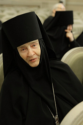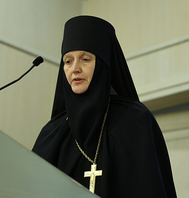 С докладом «Граждане Небесного Иерусалима» выступила настоятельница Троице-Одигитриевского ставропигиального женского монастыря Зосимова пустынь игумения Фаина (Кулешова). Матушка Фаина с тревогой отметила, что, несмотря на строящиеся и восстанавливающиеся храмы и монастыри, в настоящее время как никогда увеличилась пропасть между верой, благочестием и миром. Множество людей живут в безверии, в духовной атмосфере, в чем-то даже более тяжелой, чем в советские годы. И на современном монашестве отложила отпечаток разорванность преемственности поколений. Однако неуместно было бы во всем идеализировать Церковь и монашество времен Российской империи, так как ошибки, повлекшие за собой долгий период богоборчества и изменение отношения к Церкви, накапливались давно. И замечательные примеры исполнения монастырями миссии нравственной лечебницы, к сожалению, не отменяли фактов существенного повреждения монашеской жизни.