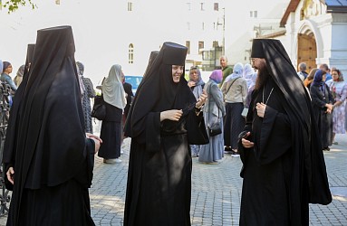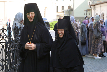 В настоящее время, сказала игумения Магдалина, ввиду человеческой немощи, по благословению игумена допускается посещение родственников в монастыре. Желательно видеть в этом акт не только милосердия, но и миссионерства, вовлекая мирских людей в жизнь Церкви, показывая духовную красоту иноческого служения. Если делать это с любовью, то, поделилась своим опытом матушка, даже далекие от Церкви родители, видя мирное и радостное устроение своих детей, постепенно проникаются смыслом пребывания в монашестве и сами начинают меняться.