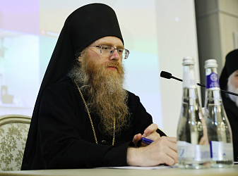 Сообщение на тему «Размышления об исторических аналогиях современного монашеского подвига» игумена Евмения (Лагутина), наместника Николо-Берлюковской пустыни Балашихинской епархии включало в себя сравнение различных исторических периодов монастырской жизни и тех вызовов, с которыми сталкивалось монашеское сообщество, взаимодействуя с миром. Отец Евмений напомнил, что несмотря на то, что основной целью для инока является стяжание Царства Небесного, подвиг монашества неразрывно связан со спасением других людей. На этом пути как раньше, так и теперь, вызовы, исходящие от мира, неизбежны для иночества. Однако, рассмотрев некоторые проблемы монастырской жизни в исторической ретроспективе, наместник Николо-Бирлюковской пустыни обратил внимание на то обстоятельство, что к настоящему времени у монашеского сообщества накоплен богатый опыт борьбы с такого рода искушениями. Так, при исследовании военных конфликтов, которые на протяжении всей истории сопровождали наше Отечество, игумен отметил, что монастыри неизменно оказывали не только духовную, но физическую, материальную помощь воинам, инвалидам, ветеранам сражений и их семьям. Традиции казачества, например, предписывали всякому воину пройти духовную реабилитацию, проживая в монастыре длительное время. Известны случаи, когда после завершения значимых сражений создавались так называемые обетные монастыри, насельниками которых становились увечные воины; строились женские обители для вдов и сирот погибших солдат. При этом важно и то, что православие до 1918 года было государственной религией, и люди, которые обращались в монастыри за помощью, были православными христианами. Учитывая имеющийся опыт, монастыри и сегодня помогают пострадавшим в зоне военного конфликта людям, в то же время заботливо оберегая внутреннюю монастырскую жизнь от разорения. В завершение своего выступления игумен Евмений предположил, что между «иосифлянами» и «нестяжателями» нет внутреннего противоречия, так как практически во всех монастырях есть необходимые условия для представителей обеих сторон.