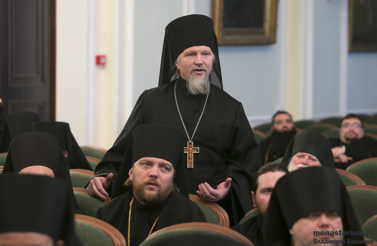 Игумен Петр (Еремеев) отчитался перед собравшимися о текущей работе Межведомственной комиссии по образованию монашествующих и напомнил, что в соответствии с принятым Священном Синодом Положением духовное образование монашествующих является подготовкой к постригу. По мнению членов Коллегии, есть основания для обсуждения образовательного стандарта. В частности, члены Коллегии полагают, что курсы для монашествующих было бы целесообразно организовывать на базе монастырей. Игумен Петр сообщил, что в 2016 году епархии самостоятельно разрабатывали образовательные программы для курсов, но в следующем году будет утвержден единый образовательный стандарт для монашествующих. После выступления отец Петр ответил на вопросы участников собрания и пригласил представителей епархий к обсуждению документов, разрабатываемых Комиссией.