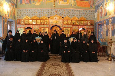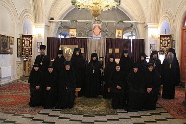 28 ноября в первой половине дня выездная экспертная комиссия прибыла в Богородице-Рождественский (Ильинский) женский монастырь г. Тюмени. Членов комиссии встречала игумения Нина (Схулухия), настоятельница монастыря. Председателем выездной экспертной комиссии архимандритом Феофилактом (Безукладниковым) в архондарике обители была проведена беседа о цели и задачах реализуемого стандарта базовой богословской подготовки монашествующих с игуменией Ниной и слушательницами курсов. На встрече присутствовали все насельницы монастыря, а также преподаватель курсов архимандрит Зосима (Горшунов), наместник Свято-Троицкого мужского монастыря г. Тюмени. После беседы с матушкой и сестрами состоялась проверка библиотечного фонда основной литературы для курсов и материально-технической базы данной учебной площадки. Игумения Нина рассказала членам комиссии об истории и возрождении монастыря, показала храм обители, вид на реку Туру и памятник святым Царственным страстотерпцам.