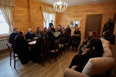 20 февраля в Томской духовной семинарии состоялось общее собрание наместников, представителей монастырей и преподавателей курсов, посвященное открытию богословских курсов для монашествующих Томской митрополии. В ходе встречи обсуждались вопросы организации работы курсов на образовательных площадках. Методическим центром и базовой учебной площадкой курсов станет Томская духовная семинария. Руководитель экспертной группы иеромонах Аполлинарий (Панин) представил собравшимся официальные документы, касающиеся образования монашествующих, озвучил основные требования и ознакомил преподавателей с единой программой курсов, включающей восемь предметов. Монашествующие Томской митрополии будут изучать также дополнительный предмет – Историю Православия в Сибири.
