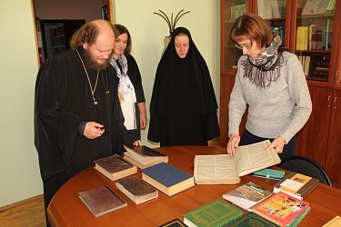 7 ноября члены комиссии приняли зачет, ознакомились с материально-технической базой и библиотечным фондом дополнительной учебной площадки и встретились с настоятельницей игуменией Георгией (Боровик), директором Центра иереем Вячеславом Патриным и преподавателем курсов иереем Виктором Вытновым в Усть-Медведицком Спасо-Преображенском женском монастыре.