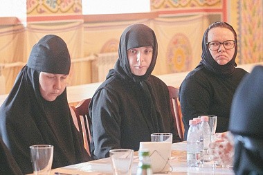 Затем члены Комиссии посетили дополнительную учебную площадку ‒ Иверский женский монастырь, где провели беседу с насельницами Иверского и Абабковского монастырей ‒ слушательницами открывающихся богословских курсов для монашествующих.