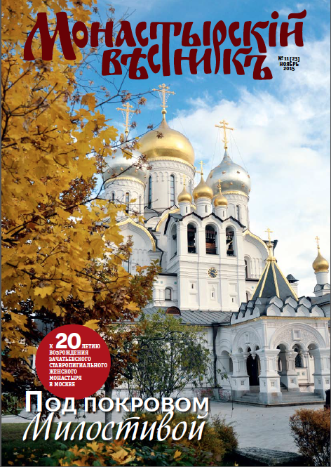 Выходит в свет ноябрьский номер журнала «Монастырский вестник» № 11 (23) – официального издания Синодального отдела по монастырям и монашеству Русской Православной Церкви.