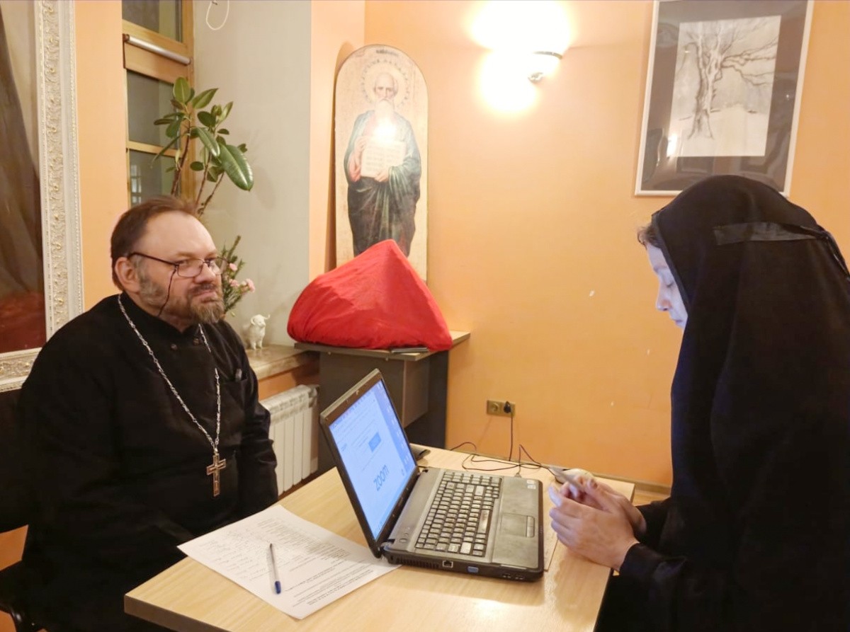 Академию на зачетах по видеосвязи представляли секретарь курсов иерей Алексий Артюхов и диакон Антоний Ковалевич.