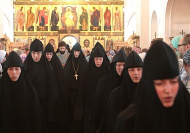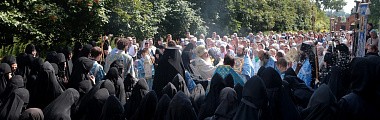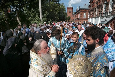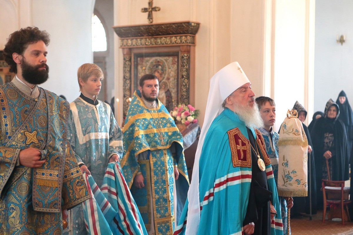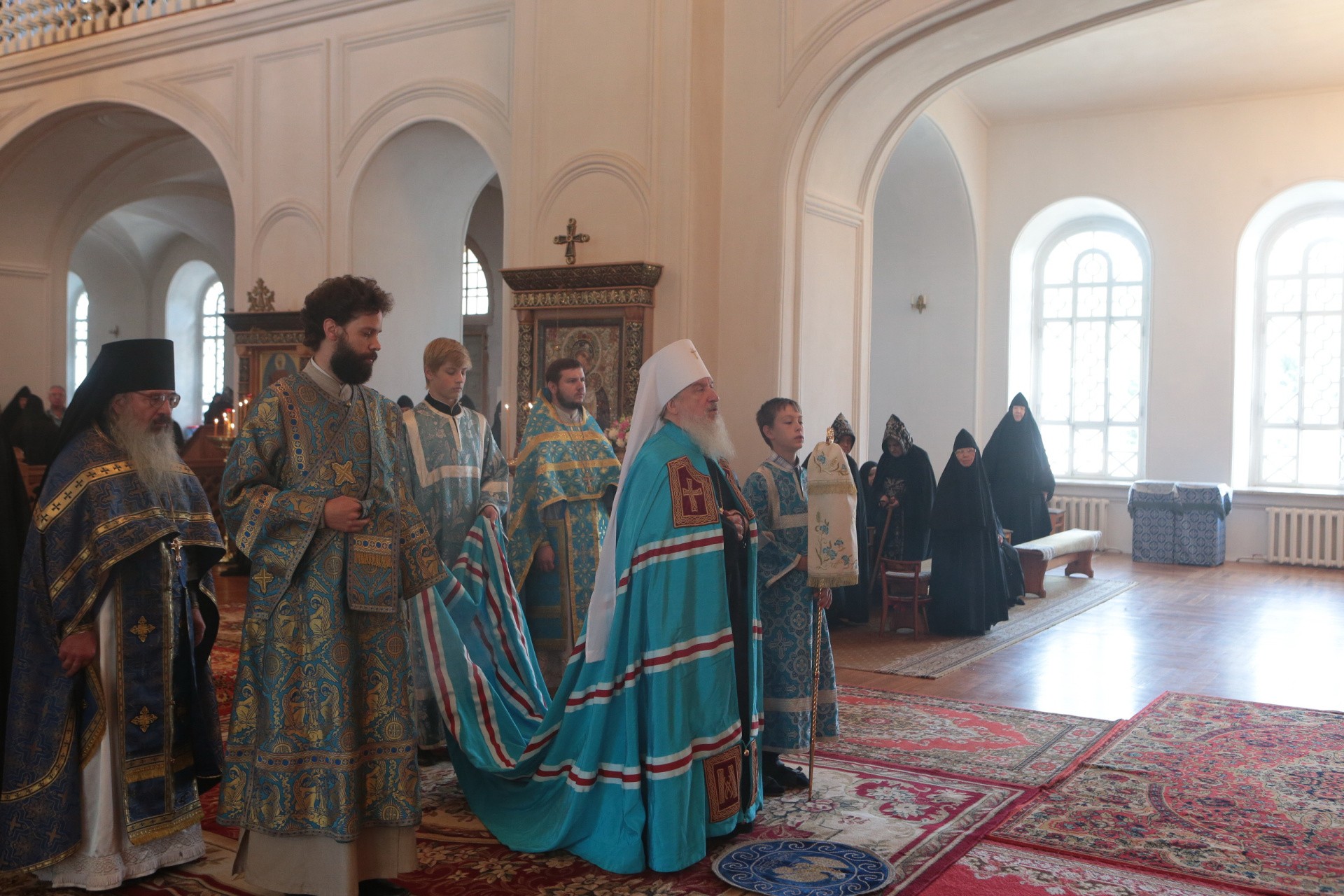 Сердечно всех вас поздравляю с праздником! Особенно хотел бы поздравить игумению Сергию и сестер этой обители, которые не устрашаются того разорения, в котором была эта обитель, трудятся и своей молитвой содействуют воссозданию этой святой обители. Благодатная милость Божия, предстательство Божией Матери, пребывающее в этой обители, укрепит наши силы и всех, кто сюда с верой притекает, укрепляется в надежде и утверждается в любви к Богу. Всех вас с праздником!»