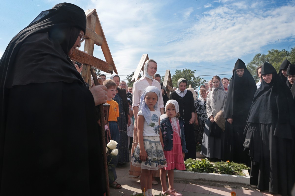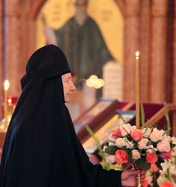 По окончании Литургии был совершен торжественный крестный ход вокруг Казанского собора обители, во время которого владыка Димитрий отслужил литию на могиле игумении Никоны (Перетягиной), бывшей настоятельницей Шамординской обители в 1990–2012 годах.