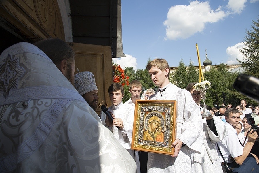 В память о совместной молитве в день престольного праздника Новоспасской обители Председатель ОВЦС передал епископу Савве Казанский образ Пресвятой Богородицы, изготовленный трудами ярославских мастеров, напомнив тем самым Его Преосвященству о Ярославской митрополии – месте служения владыки Саввы до прибытия на Московскую землю.