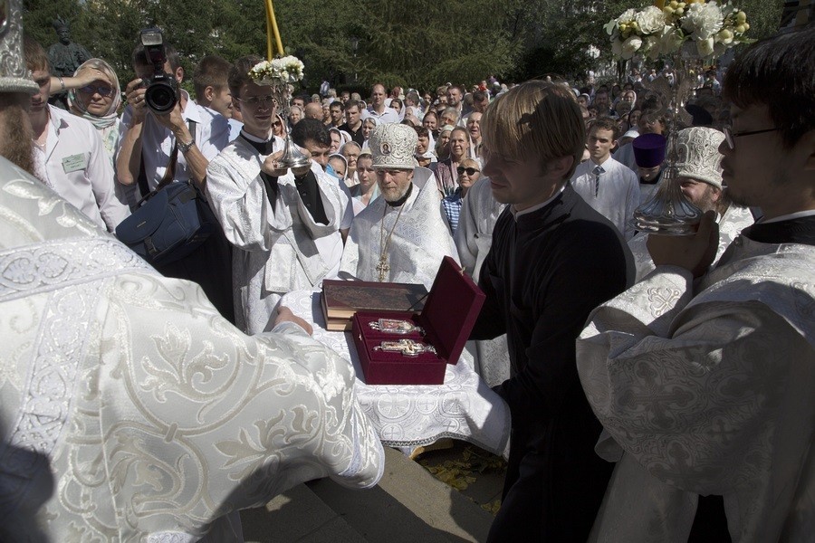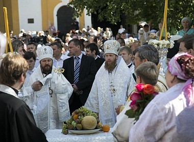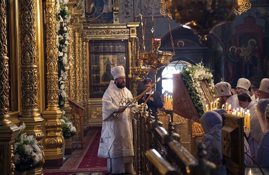 19 августа, в праздник Преображения Господа Бога и Спаса нашего Иисуса Христа и престольный праздник Новоспасской обители, Председатель Отдела внешних церковных связей Московского Патриархата митрополит Волоколамский Иларион возглавил Божественную литургию в Спасо-Преображенском соборе Новоспасского ставропигиального мужского монастыря Москвы.