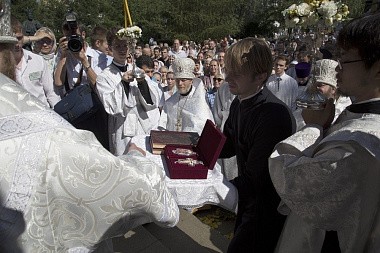 По завершении крестного хода состоялось традиционное освящение плодов нового урожая.