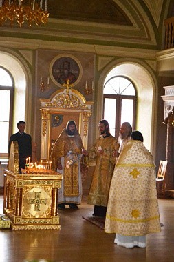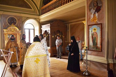 Владыка Феогност совершил Божественную литургию. Архиепископу Феогносту сослужил священник Зосимовой пустыни иерей Владимир Миронов.