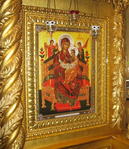 В середине 1990-х годов список с чудотворного образа Божией Матери «Всецарица» («Пантанасса») прибыл из Ватопедского монастыря Святой Горы Афон, став главной святыней Новоспасской обители. Когда-то эта древняя обитель Москвы именовалась царскою, была домовой обителью русских царей династии Романовых. Неслучайно по прошествии лет главной святыней Новоспасского монастыря становится икона Божией Матери «Всецарица».