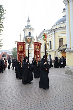 26 сентября, в день памяти Обновления храма Воскресения Христова в Иерусалиме, состоялся престольный праздник храма Воскресения Словущего в Покровском ставропигиальном женском монастыре Москвы.