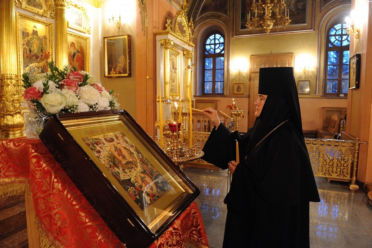 За богослужением молились настоятельница Покровского ставропигиального женского монастыря Москвы игумения Феофания, сестры и прихожане обители.