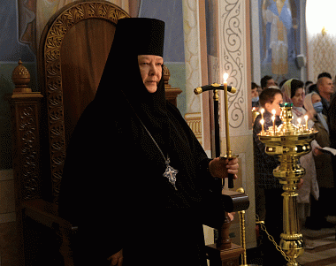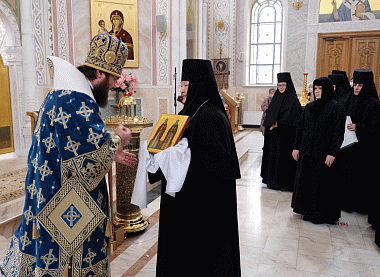 После славления праздника Преосвященнейший владыка поздравил игумению Олимпиаду и всех молящихся с престольным праздником обители и обратился к собравшимся с архипастырским словом.
