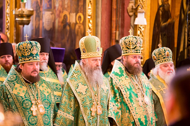 Его Святейшеству сослужили: митрополит Киевский и всея Украины Онуфрий, Предстоятель Украинской Православной Церкви; митрополит Минский и Слуцкий Павел, Патриарший экзарх всея Беларуси; митрополит Чебоксарский и Чувашский Варнава; митрополит Воронежский и Лискинский Сергий; митрополит Тульский и Ефремовский Алексий; митрополит Истринский Арсений, первый викарий Патриарха Московского и всея Руси по г. Москве; митрополит Владимирский и Суздальский Евлогий; митрополит Тамбовский и Рассказовский Феодосий; митрополит Пензенский и Нижнеломовский Серафим; митрополит Загребский и Люблянский Порфирий (Сербская Православная Церковь); архиепископ Сергиево-Посадский Феогност, председатель Синодального отдела по монастырям и монашеству, наместник Свято-Троицкой Сергиевой лавры; архиепископ Егорьевский Марк, председатель Финансово-хозяйственного управления Московского Патриархата, руководитель Управления Московской Патриархии по зарубежным учреждениям; епископ Дмитровский Феофилакт, наместник Андреевского ставропигиального мужского монастыря; епископ Моравичский Антоний, представитель Сербской Православной Церкви при Патриархе Московском и всея Руси; епископ Солнечногорский Сергий, руководитель Административного секретариата Московской Патриархии; епископ Орехово-Зуевский Пантелеимон, председатель Синодального отдела по церковной благотворительности и социальному служению; епископ Ханты-Мансийский и Сургутский Павел; епископ Воскресенский Савва, первый заместитель управляющего делами Московской Патриархии; епископ Вологодский и Великоустюжский Игнатий; епископ Смоленский и Вяземский Исидор; епископ Щигровский и Мантуровский Паисий; секретарь Патриарха Московского и всея Руси по г. Москве протоиерей Владимир Диваков; наместник Свято-Данилова мужского ставропигиального монастыря города Москвы архимандрит Алексий (Поликарпов); игумен монастыря Симонопетра на Святой Горе Афон архимандрит Елисей; представитель Патриарха Болгарского при Патриархе Московском и всея Руси архимандрит Феоктист (Димитров); наместник Спасо-Преображенского Соловецкого ставропигиального мужского монастыря архимандрит Порфирий (Шутов); благочинный Свято-Троицкой Сергиевой лавры архимандрит Павел (Кривоногов); наместник Николо-Угрешского ставропигиального мужского монастыря игумен Варфоломей (Петров); протоиерей Михаил Дудич (Польская Православная Церковь); духовенство.