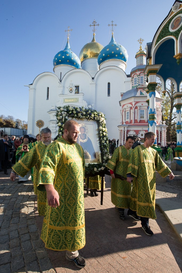 8 октября 2014 года, в день преставления преподобного Сергия, игумена Радонежского, всея России чудотворца (1392), Святейший Патриарх Московский и всея Руси Кирилл совершил Божественную литургию в Успенском соборе Свято-Троицкой Сергиевой лавры.