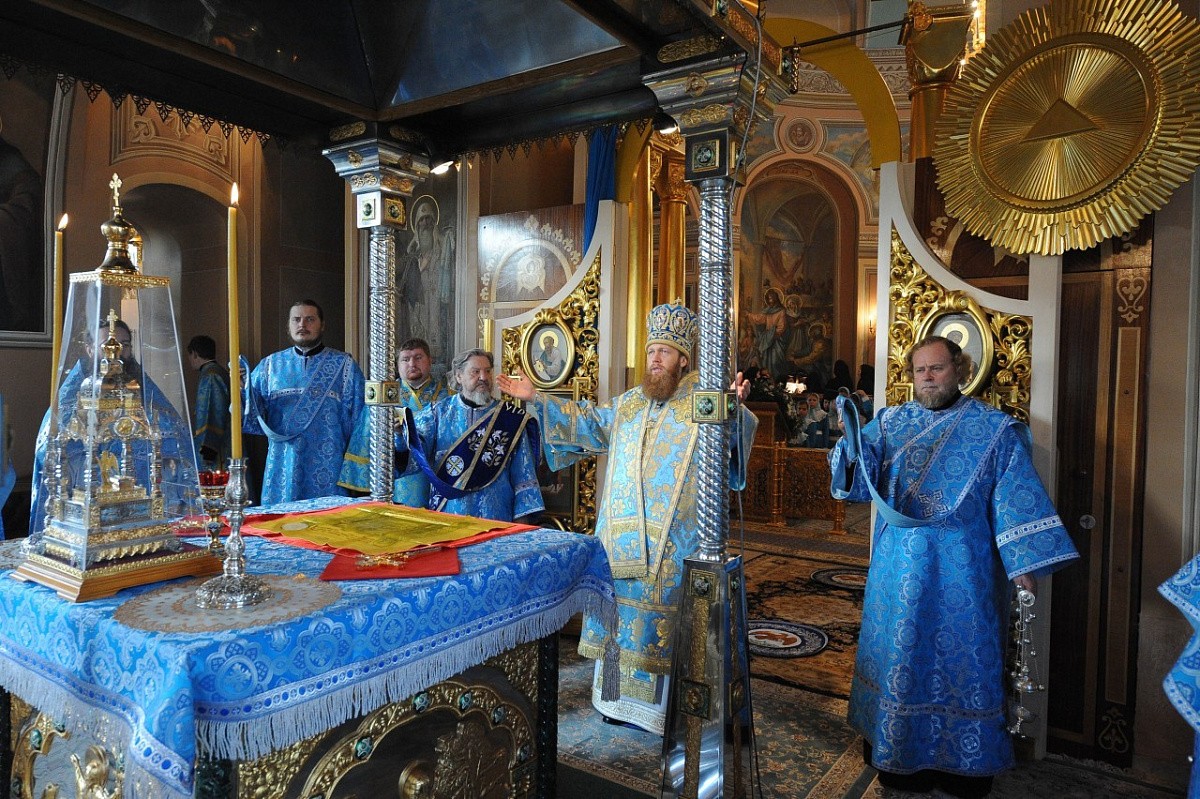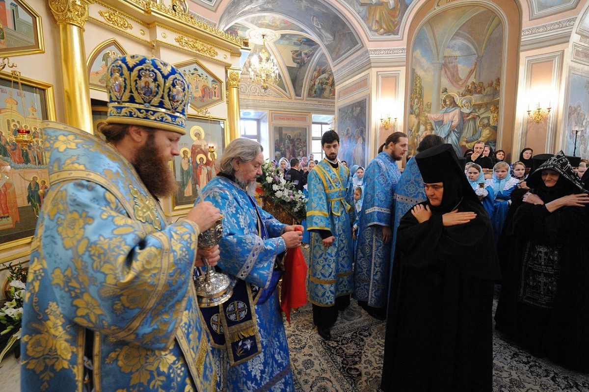14 октября, в праздник Покрова Пресвятой Владычицы нашей Богородицы и Приснодевы Марии, по благословению Святейшего Патриарха Московского и всея Руси Кирилла наместник Новоспасского ставропигиального мужского монастыря епископ Воскресенский Савва совершил Божественную литургию в Покровском ставропигиальном женском монастыре Москвы.