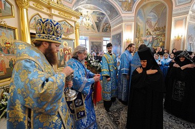По окончании Литургии владыка Савва возглавил праздничный крестный ход вокруг Покровского храма обители, после чего окропил храм и всех молящихся святой водой, а затем все пришедшие на торжество соборно пропели молитву «Царице моя Преблагая».