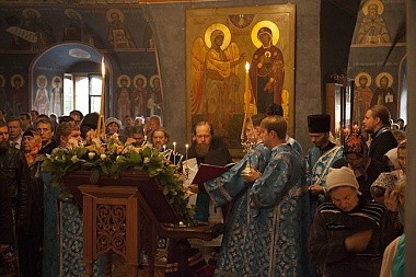 13 октября, накануне празднования Покрова Пресвятой Владычицы нашей Богородицы и Приснодевы Марии, наместник Новоспасского ставропигиального мужского монастыря, викарий Святейшего Патриарха Московского и всея Руси епископ Воскресенский Савва совершил Всенощное бдение в храме Покрова Божией Матери Новоспасской обители.