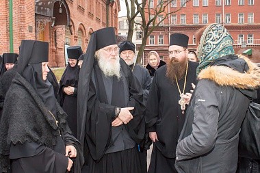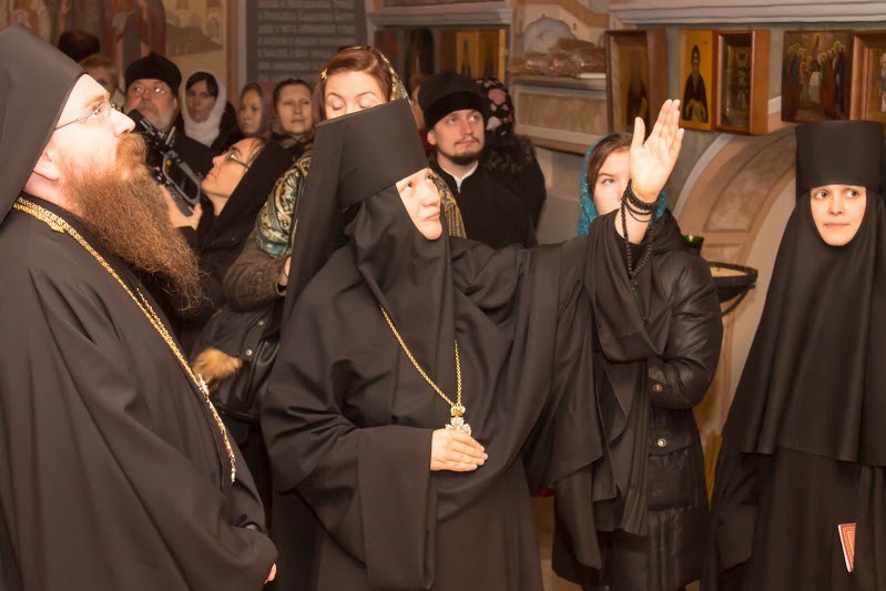 Современный человек очень устал от трудностей повседневной жизни. Чтобы отдохнуть от этой его вечной усталости, он должен наблюдать и иную жизнь. А иную жизнь он может наблюдать только в стенах монастырей. И я думаю, что все сегодняшние честные паломники, которые присутствовали на нашем богослужении, а также все те многочисленные паломники, которые посещают богослужения в вашем монастыре, слушая ангельское пение сестер, понимают, что существует, конечно, и иная жизнь. Существует Господь, Который дает людям мир в душе, дает человеку спокойствие. И я бы хотел помолиться Господу Богу нашему, чтобы Он укреплял вас в ваших начинаниях, в вашем нелегком деле − подвиге, который вы совершаете, поскольку ваш монастырь находится в центре большого города, и поэтому его присутствие здесь особенно значимо. Вы своим присутствием, своим служением помогаете людям, живущим в мегаполисе, укрепляться в вере.