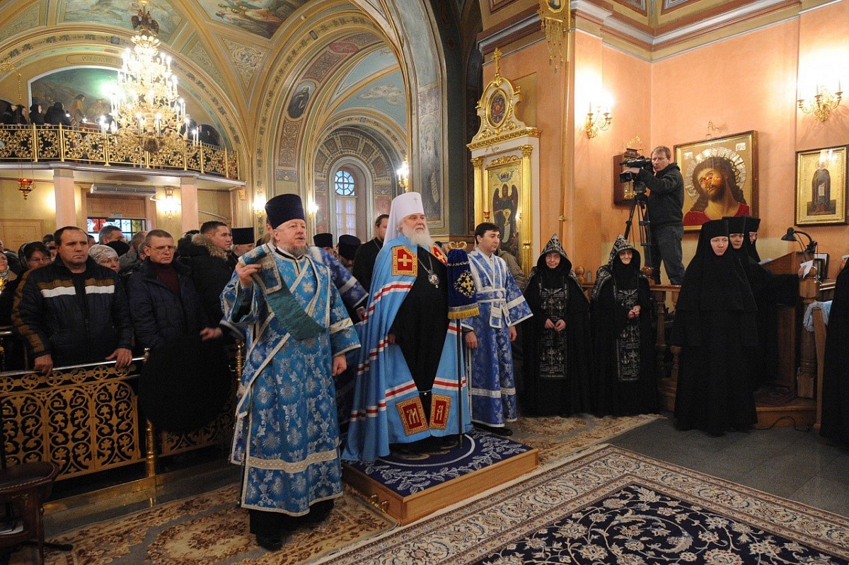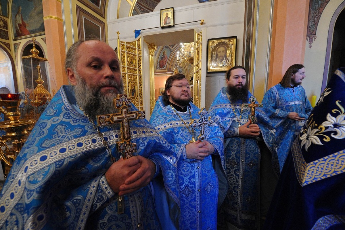 Его Высокопреосвященству сослужили: протоиерей Владимир Диваков, секретарь Патриарха Московского и всея Руси по г. Москве; протоиерей Александр Абрамов, благочинный Покровского округа г. Москвы, настоятель храма Свт. Мартина Исповедника в Алексеевской Новой Слободе; духовенство г. Москвы.
