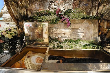 По окончании Литургии в Покровском соборе обители был отслужен молебен у раки с мощами блаженной старицы Матроны.