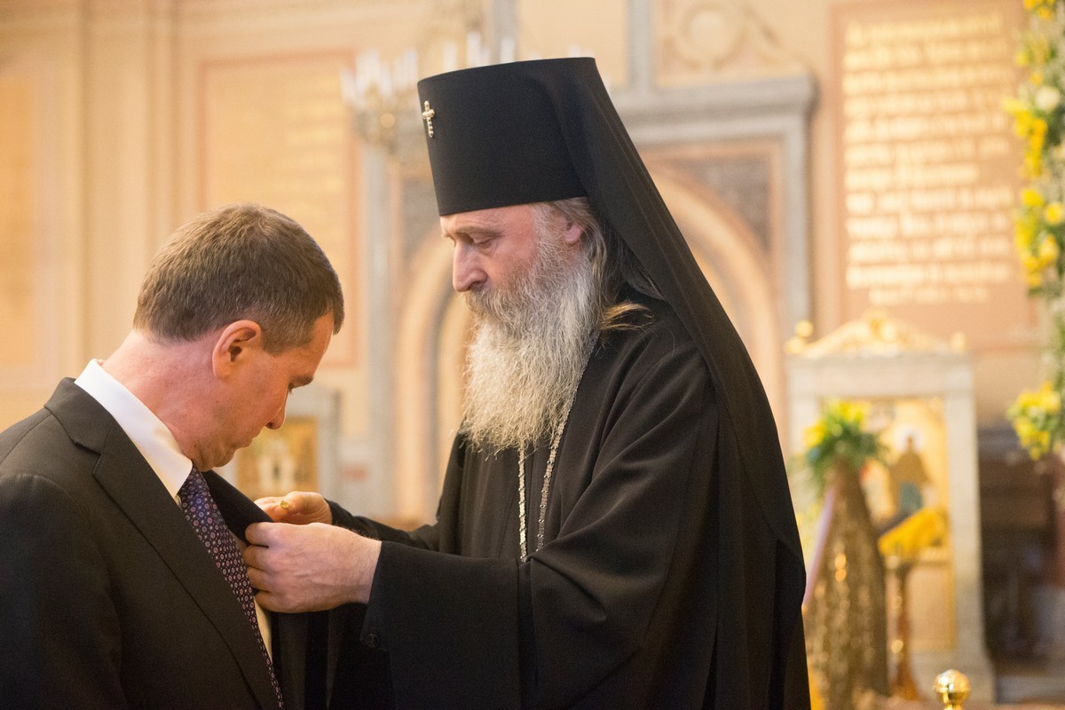 Также Предстоятелю Русской Церкви сослужили архиереи Сербской Православной Церкви: епископ Бачский Ириней; представитель Патриарха Сербского при Московском Патриаршем Престоле епископ Моравичский Антоний; епископ Крушевацкий Давид и епископ Егарский Иероним.