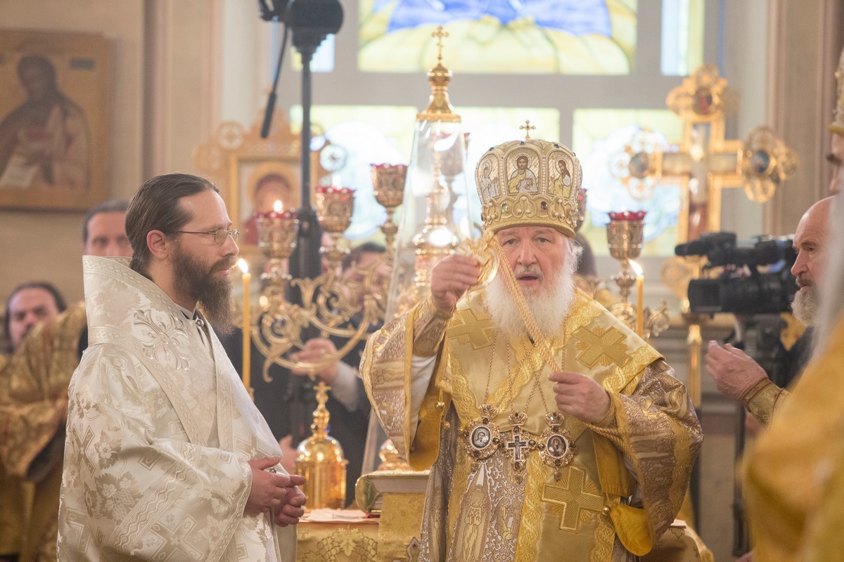 После сугубой ектении Святейший Владыка вознес молитву о мире на Украине.