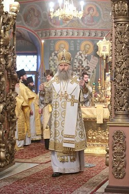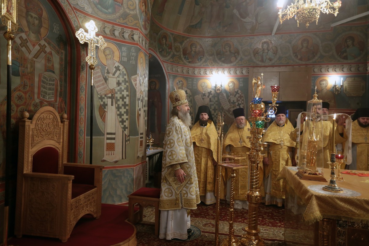 Его Высокопреосвященству сослужили: наместник Высоко-Петровского ставропигиального мужского монастыря игумен Петр (Еремеев); наместник Николо-Угрешского ставропигиального мужского монастыря игумен Варфоломей (Петров) и др.