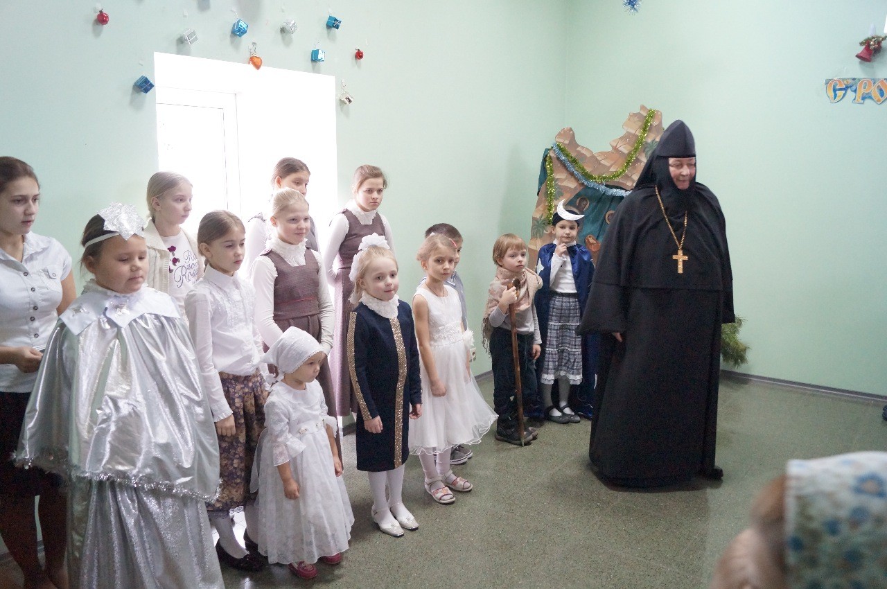 Дети рассказали сестрам и прихожанам монастыря о Рождестве Христовом, исполнили рождественские песнопения и колядки, показали поучительную сказку по мотивам всеми любимой с детства песни «В лесу родилась елочка». Эта каждому знакомая история представила повод поразмышлять о смысле жизни, Премудром Промысле Божием и о непреходящей ценности каждого самого скромного и маленького создания. Мудрый дедушка Мороз с доброй внучкой Снегурочкой провели для детей увлекательные конкурсы и вручили всем гостям памятные призы и сладкие подарки.