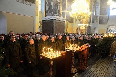 В Донской ставропигиальный мужской монастырь Москвы на Рождественские службы прибыли солдаты подшефного Семеновского полка с целью причаститься Святых Христовых Таин. 37 человек причащалось на ночной Божественной литургии и 60 человек – на утренней Литургии.