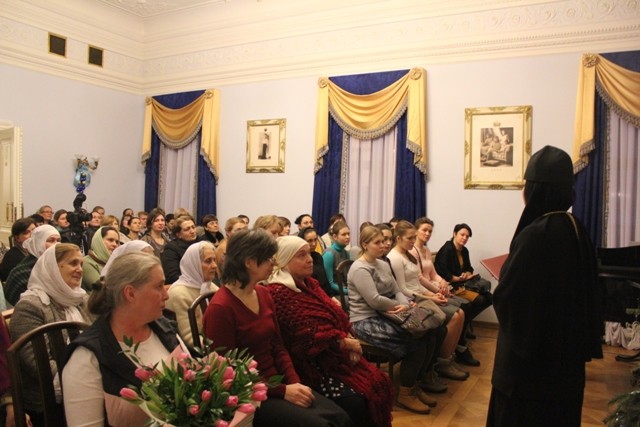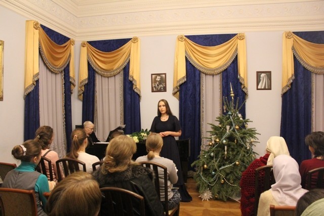 В Голубой гостиной монастыря в этот вечер был организован праздничный концерт. Гостей праздника пришли поздравить друзья Марфо-Мариинской обители – артисты Центра оперного пения им. Галины Вишневской.