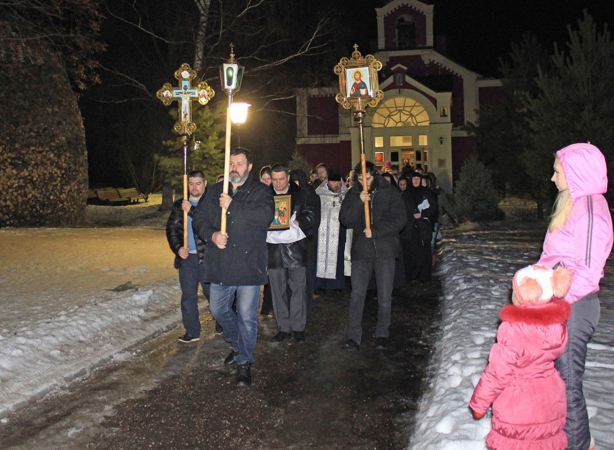 По завершении богослужения прихожане вместе с настоятельницей монастыря игуменией Екатериной (Чайниковой) и сестрами крестным ходом прошли на приготовленную иордань – монастырский пруд с воздвигнутым в 2013 году поклонным Крестом, где уже собралось множество желающих окунуться в освященных водах.