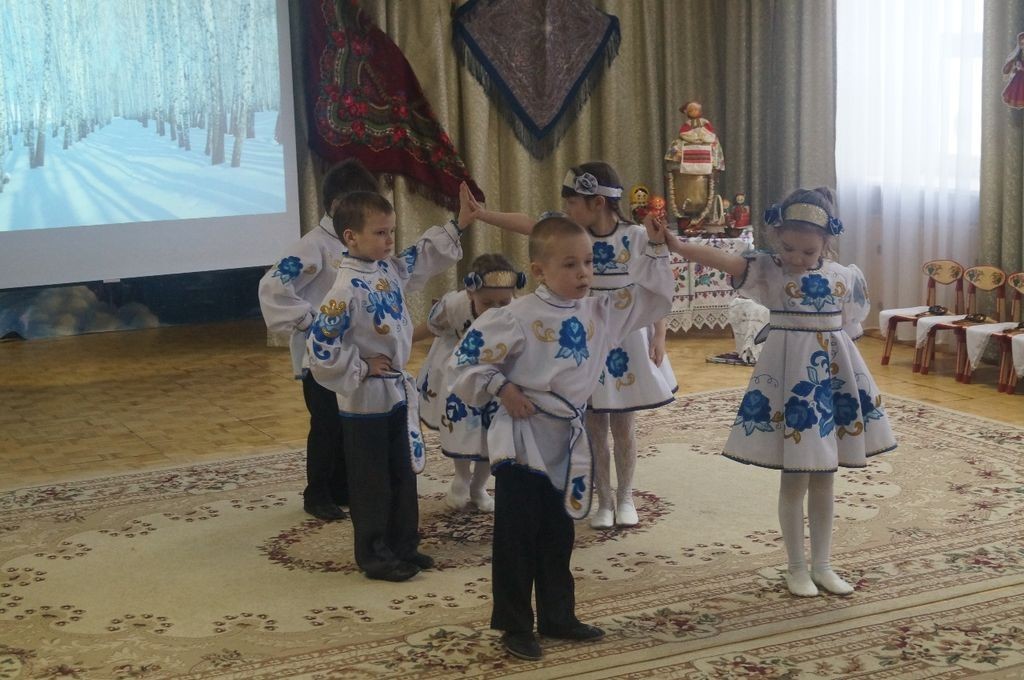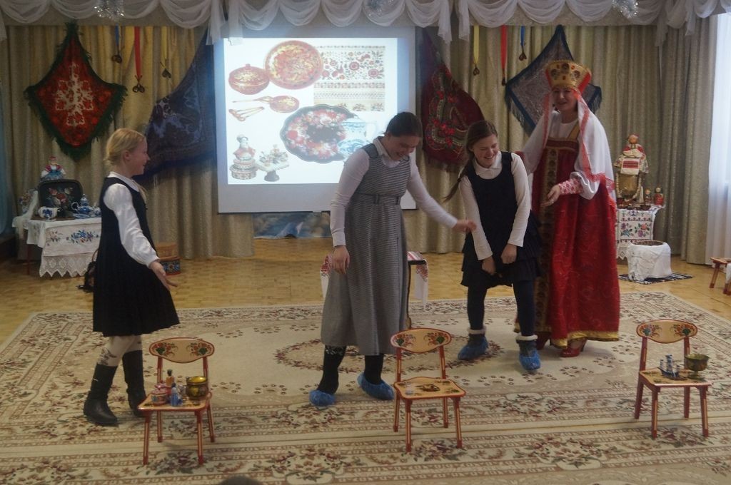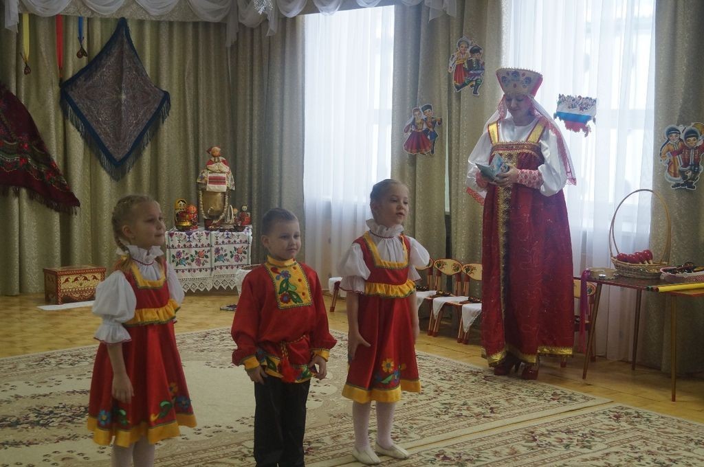 В начале мероприятия ребята в русских народных костюмах читали стихотворения, танцевали и рассказывали зрителям о традициях русского народа.