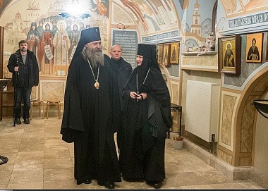 Его Высокопреосвященство архиепископ Феогност впервые совершал Литургию в надвратном храме Нерукотворного Образа Спасителя – древнейшем храме Зачатьевского монастыря конца XVII века.