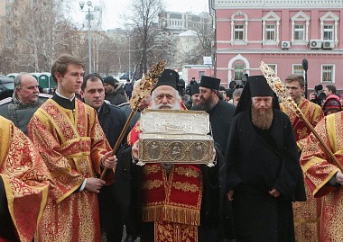 «Пребывание в Новоспасской обители ковчега с честными мощами святого Димитрия Солунского – это милость и благодать Божия, которую нам являет Господь. Ведь ревность о Боге военачальника Димитрия была столь велика, что его называли вторым апостолом Павлом. Эта святыня прибыла в Россию в год 70-летия Великой Победы над фашизмом.