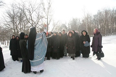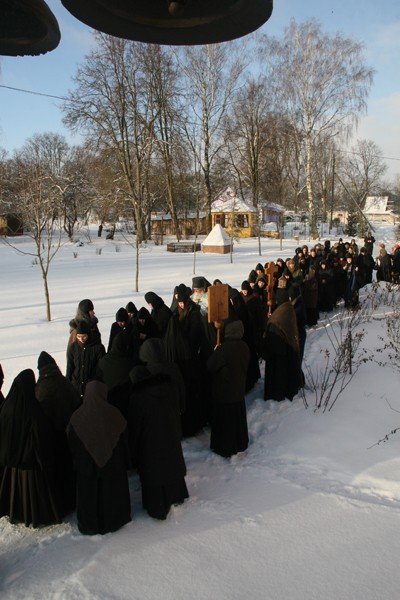 По окончании Литургии состоялись молебен с водосвятием и крестный ход вокруг храма Иконы Божией Матери «Утоли моя печали».