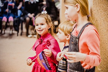 Во время встречи гостей приветствовали воспитанники Воскресной школы Донского монастыря, вручившие им сладкие подарки.