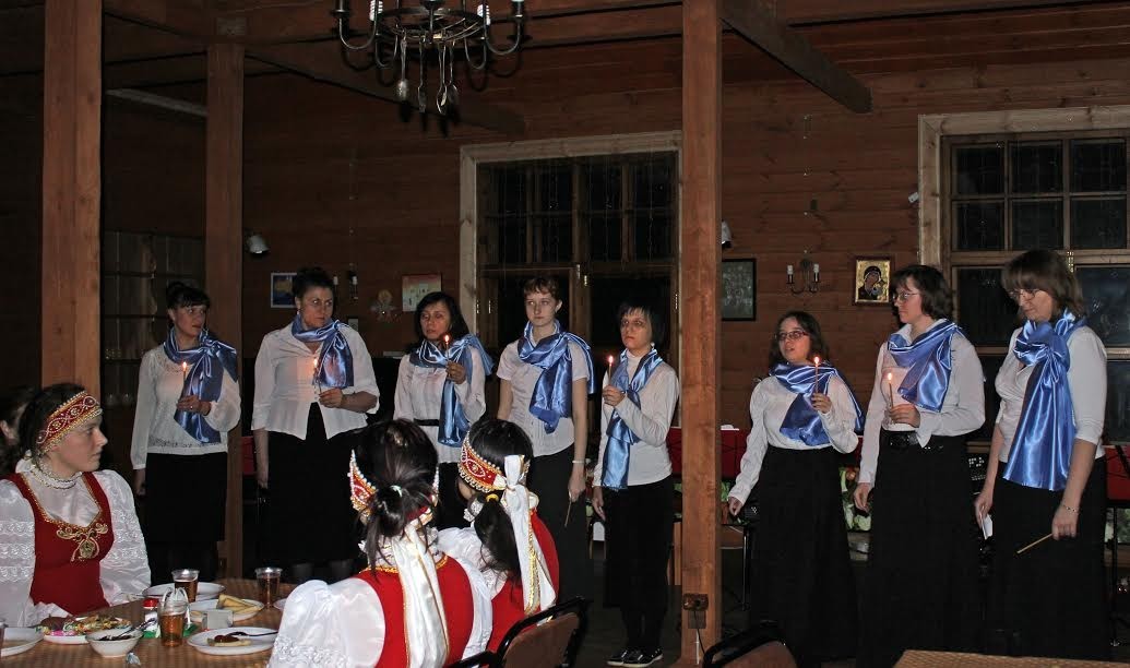 За чашкой чая с блинами шел разговор о масленице и традициях, связанных с неделей перед Великим постом. Продолжая тему масленицы и народного веселья, хор «Воскресение» представил слушателям песни «Подмосковные вечера» и «Московскую кадриль», а приглашенный оркестр народных инструментов «Сувенир» – народные казацкие песни, уральскую плясовую, «Светит месяц, светит ясный» и другие.