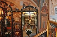 По окончании богослужения Предстоятеля Русской Церкви приветствовала игумения Иулиания, которая преподнесла Его Святейшеству икону Торжества Православия.