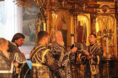 Литургия Преждеосвященных Даров была совершена Высокопреосвященнейшим Варфоломеем в сослужении монастырского духовенства.