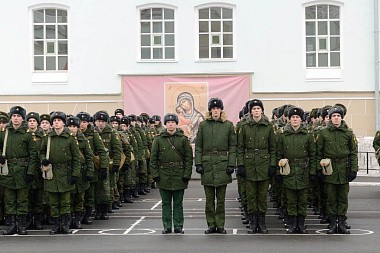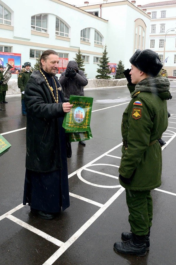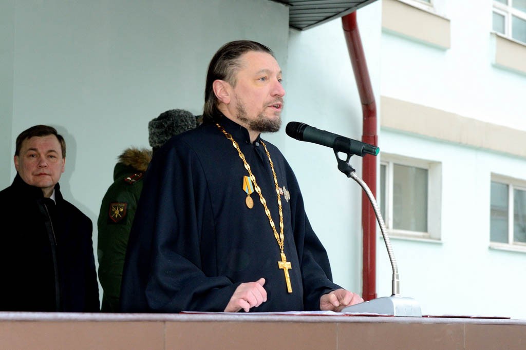 Слова поздравления от имени Донского монастыря произнес отец Никита. Батюшка благословил военнослужащих полка, пожелав им помощи Божией.
