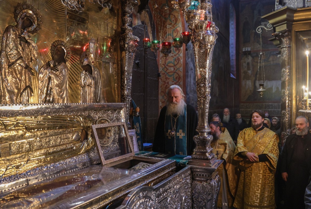 По окончании Литургии митрополит Феогност совершил молебен перед мощами преподобного Сергия Радонежского.