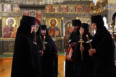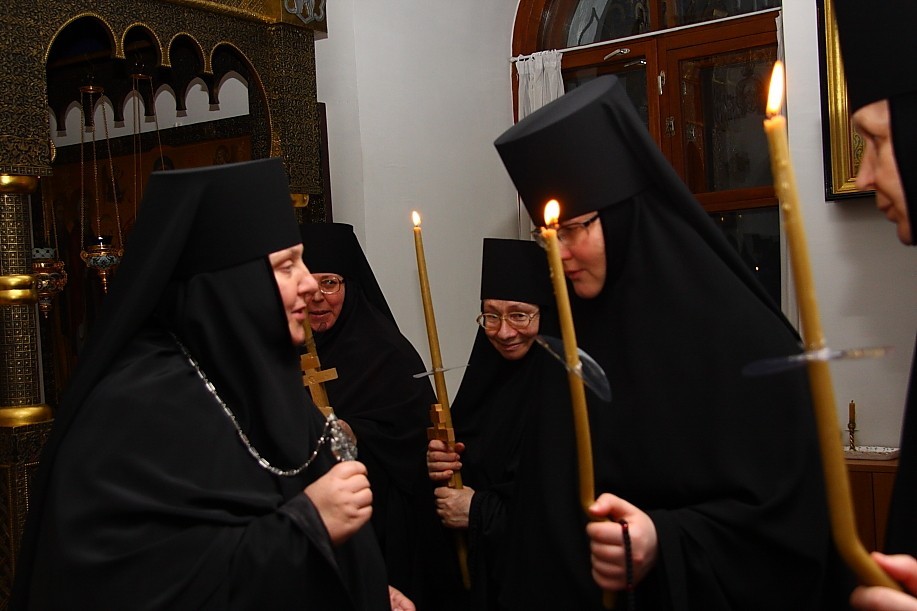 Дорогая матушка игумения, сестры, поздравляю всех с совершившимся сегодня Таинством обетов пред Богом новых, новоначальных монахинь. Поздравляем сестер, которые пришли ко Христу и дали свои обеты. Вступив в сей подвиг, в сей образ жизни, вы вступили на подвиг покаяния, на подвиг исправления своей жизни, своего сердца, своего ума, стяжания ума Христова, стяжания чистоты сердечной и нищеты духовной.